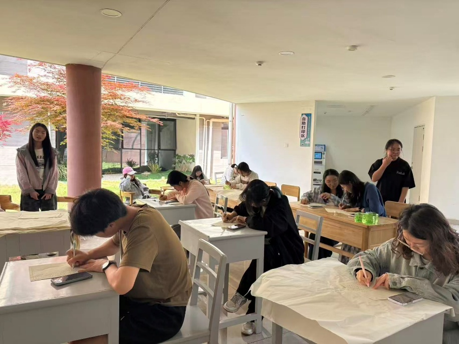 惠风拂面,春和景明。为捕捉春日校园美好光景,丰富青年课余文化生活,涵养人文艺术情怀,建工学院于新校区五栋精心开展“以画抒怀,以书言志”主题书法绘画活动。暖阳穿过通透的落地空间,窗外红枫似火、草木欣然,雅致开阔的大厅里,同学们有序围坐、静候体验,整场活动在温柔治愈的春日氛围中正式拉开帷幕。大家暂别课业忙碌,满心期待地沉浸在这场沉浸式的春日书画盛宴之中。