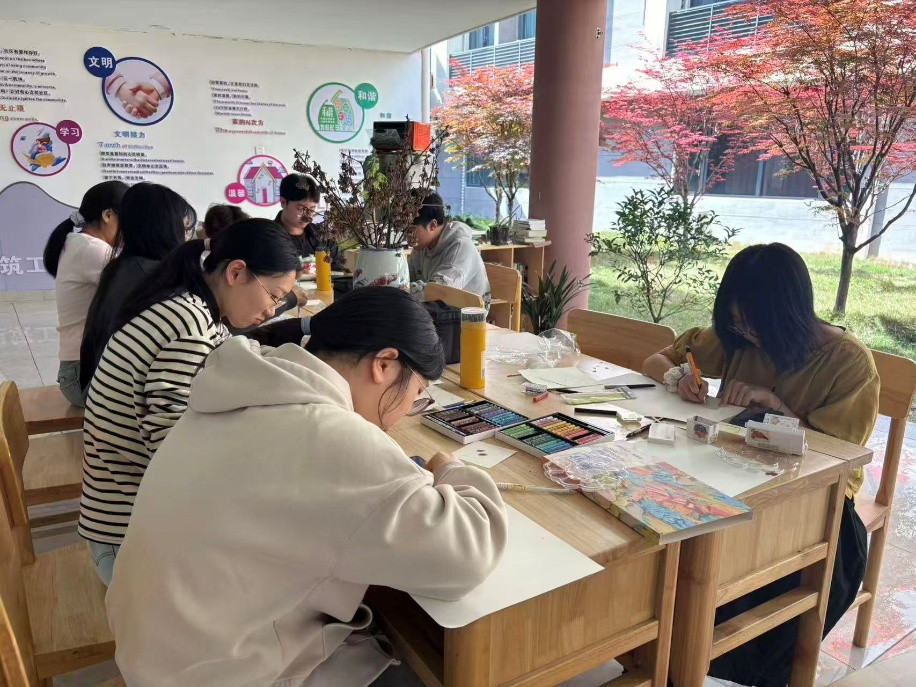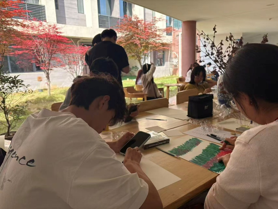活动正式进入绘画创作环节,现场氛围安静而热烈。大家围坐在长桌旁,面前整齐陈列着彩铅、水彩、画本等全套绘画物料,全员沉心投入创作。同学们低头描摹勾勒、随心配色铺陈,将眼中春日盛景、心底浪漫情怀尽数倾注于画笔之上。创作间隙,大家彼此交流创意想法、分享绘画心得,在互相欣赏、彼此鼓励的轻松氛围里,尽情释放艺术灵感,用斑斓色彩定格春日美好,尽显青年蓬勃鲜活的青春朝气。