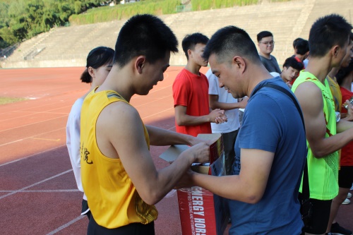 运动场上,郭书记送上饮料、水果等慰问物资,带来了学院亲切的问候。在细致了解队员训练情况后,对运动员付出的艰辛表示感谢。同时,郭书记对运动员提出了三点要求和希望: 一要求运动员保障安全,刻苦训练,科学训练,巅峰参赛,赛出风采;二希望发扬团结拼搏的团队精神,新老配合,互帮互助,共同进步;三希望在力保每位运动员赛场上发挥最佳水平,共同拼取团队整体实力的提升,并且期待今年的四连冠。