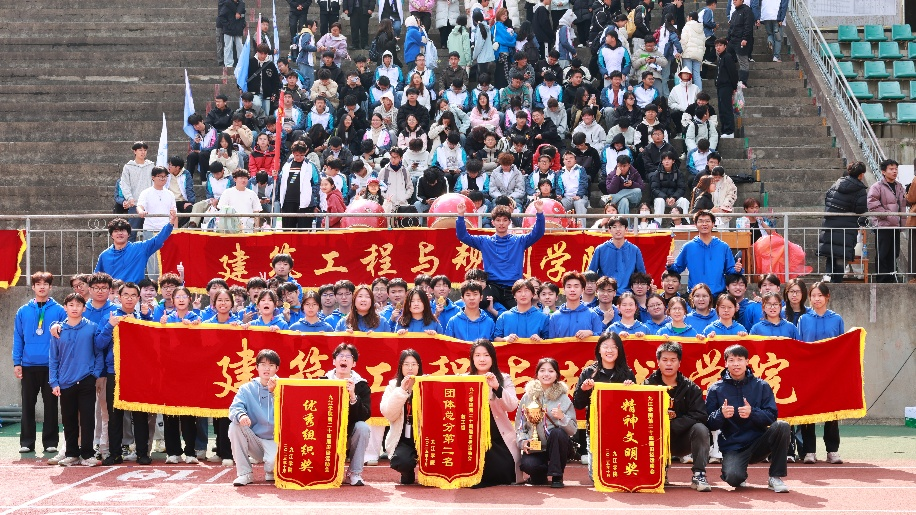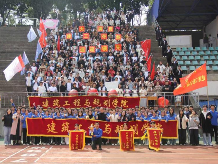 闭幕式颁奖环节,建筑工程与规划学院师生代表接过象征荣誉的锦旗与奖杯,脸上洋溢着自豪的笑容。本届运动会不仅是体能和技艺的比拼,更是建工学院凝聚力与向心力的集中展示。建工师生用汗水诠释了“更高、更快、更强”的体育精神,用团结谱写了属于学院的运动华章。这份拼搏与团结的精神,也必将延续到学院未来的建设与发展中,持续闪耀光芒。