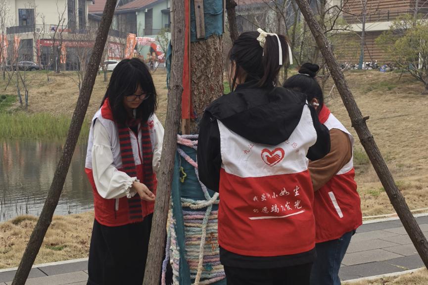 活动现场,志愿者们分工明确、协作高效,以饱满热情投入环境整治。部分志愿者专注规范非机动车停放秩序,对乱停乱放车辆逐一扶正归位、整齐摆放至指定区域,有效畅通通行空间,让停车区域面貌焕然一新。其余志愿者细心清理周边绿植,谨慎摘除树上遗留的旧装饰、绳索及悬挂杂物,及时消除安全隐患,守护校园树木健康生长。